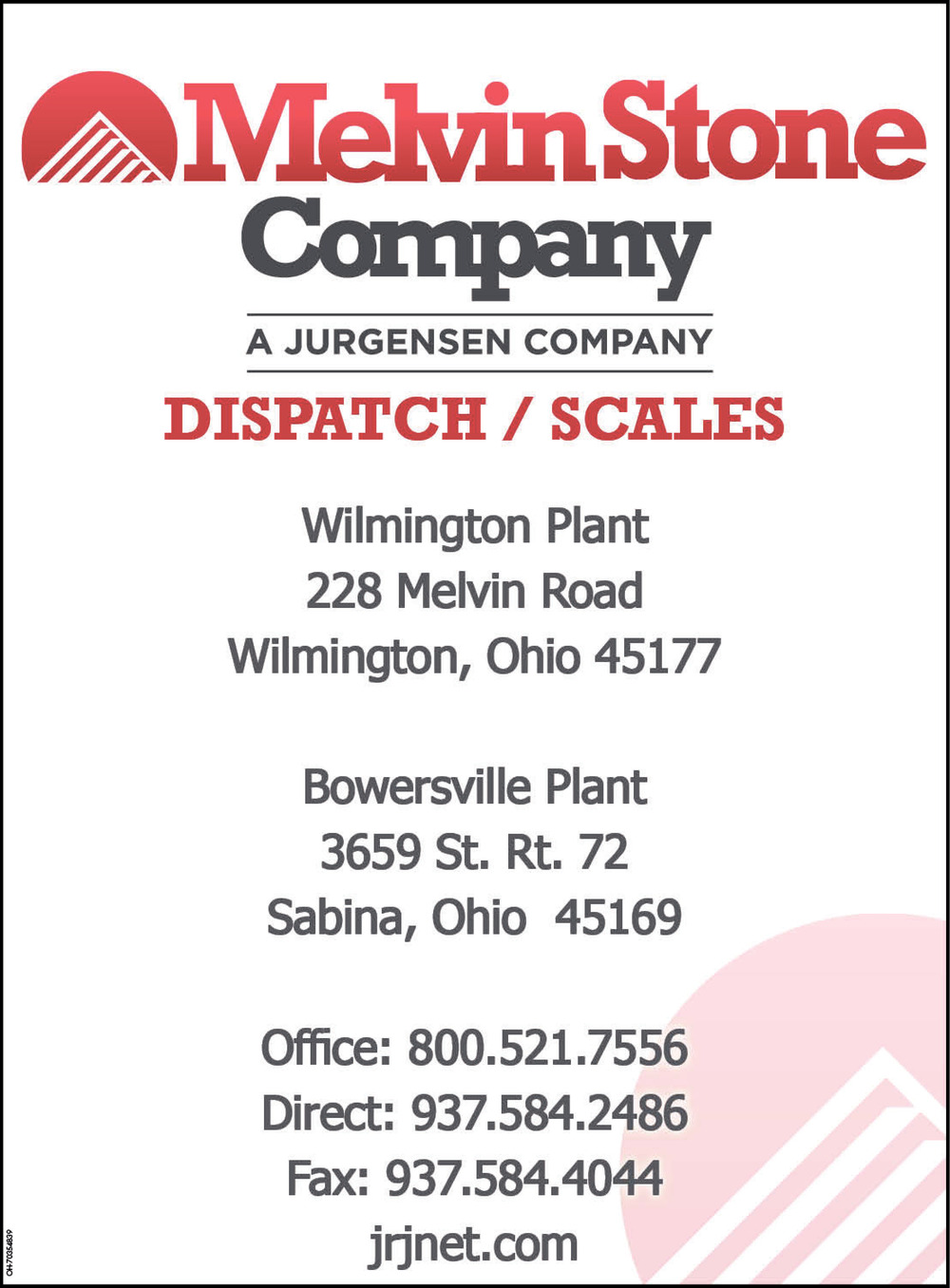 Ads for Melvin Stone Company in Sabina, OH